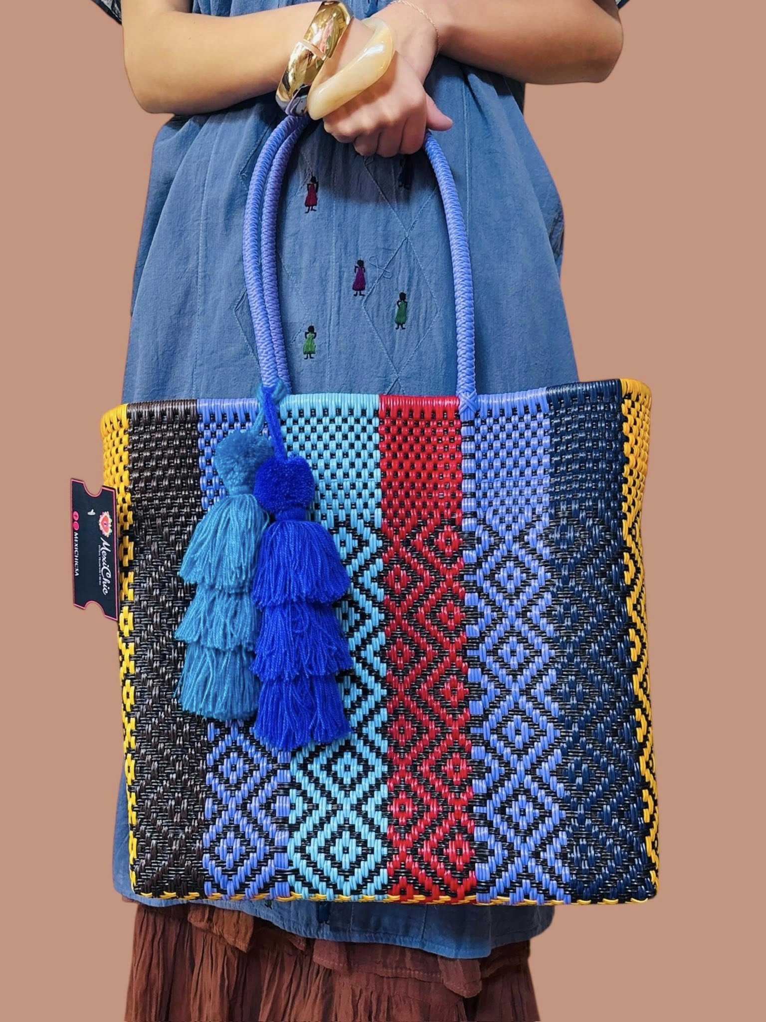 Crafted from recycled plastic in Oaxaca, this tote bag is sturdy and ideal for work, daily errands, or a beach outing. Its lasting durability ensures it will be a reliable companion, while its colors beautifully capture the essence of fall.
