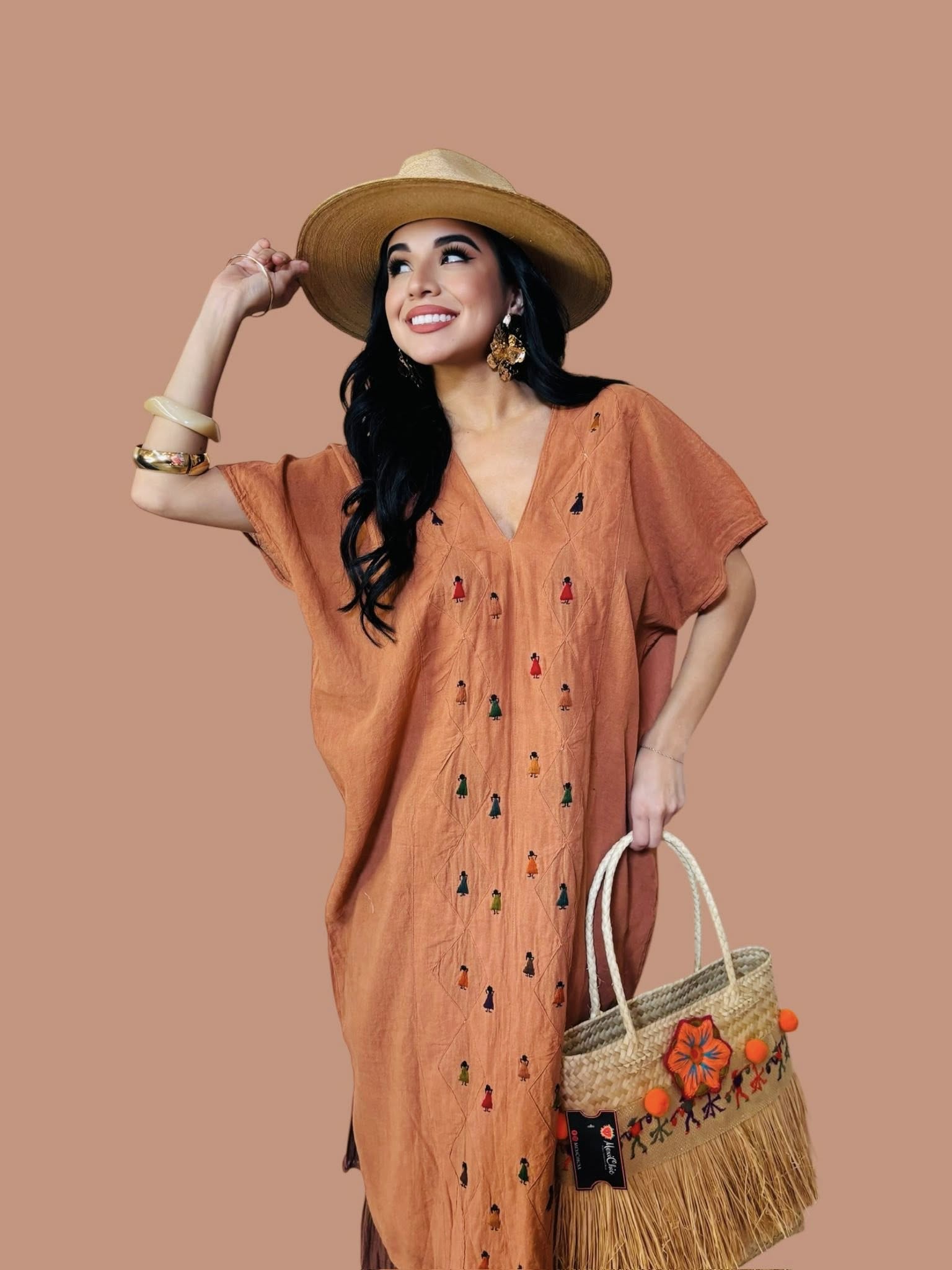 This unique Elisa Betaza Huipil Dress is freshly dyed in Oaxaca, combining traditional craftsmanship with contemporary style. The lightweight, one-size design offers versatile wearing options, pair it with a peek-a-boo skirt underneath for added flair or wear it alone. Its breathable fabric makes it an ideal choice for staying comfortable and stylish during warm summer days.
