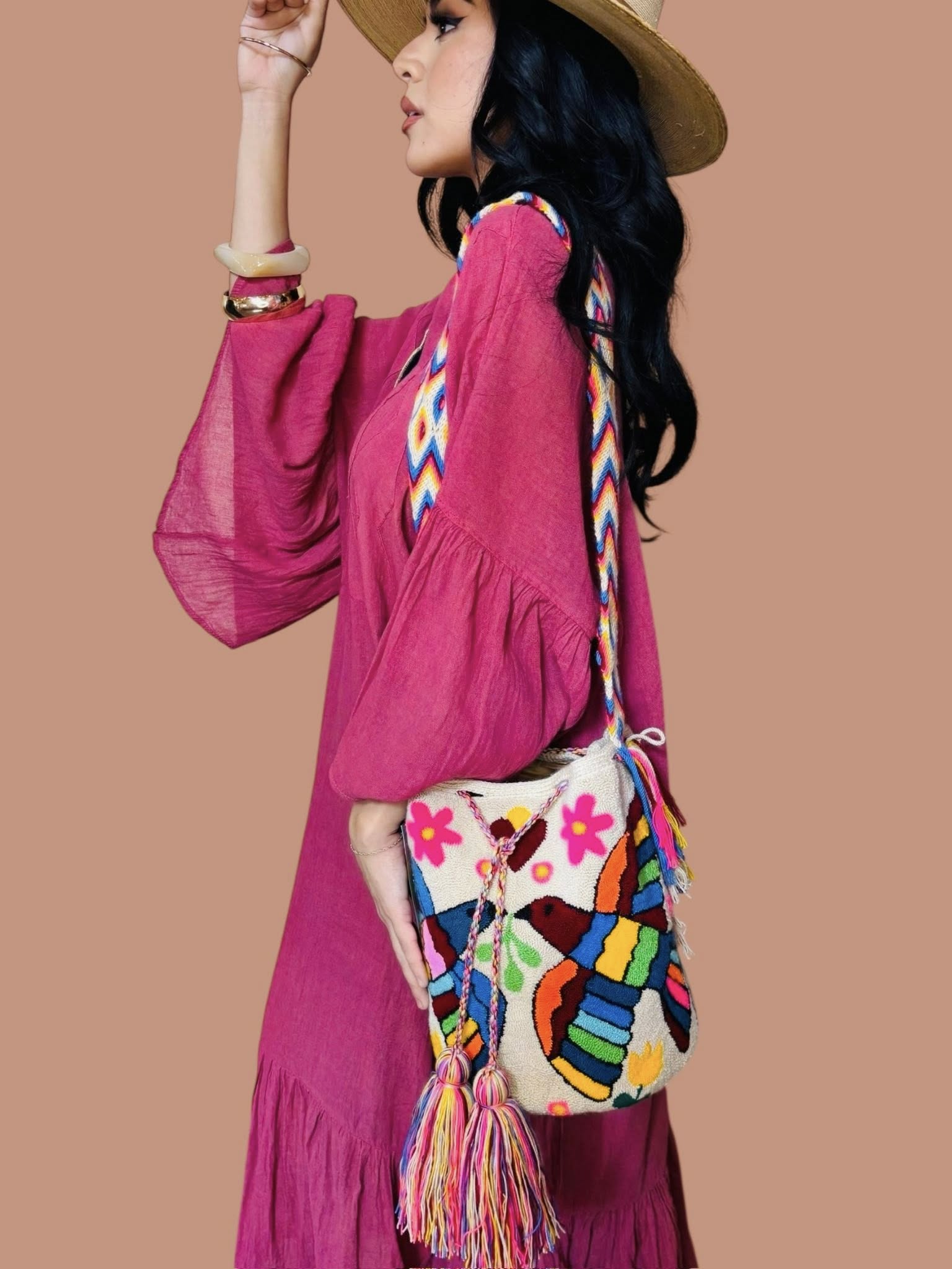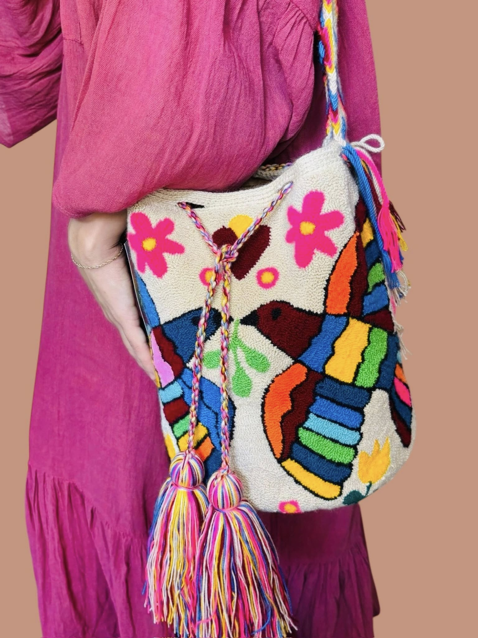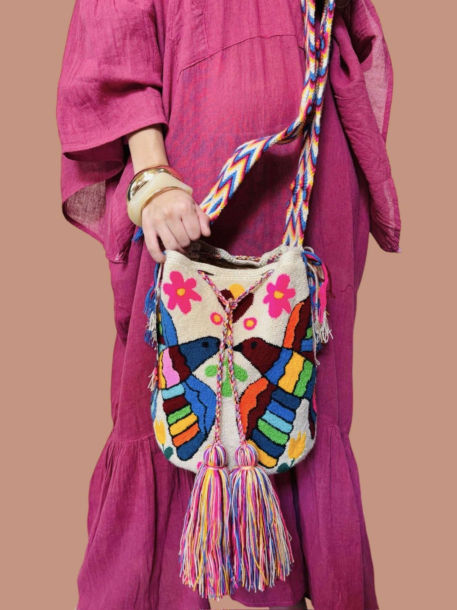 This crossbody bag is crafted with a woven tapestry design, making it an ideal accessory to complement any outfit with its intricate details.
