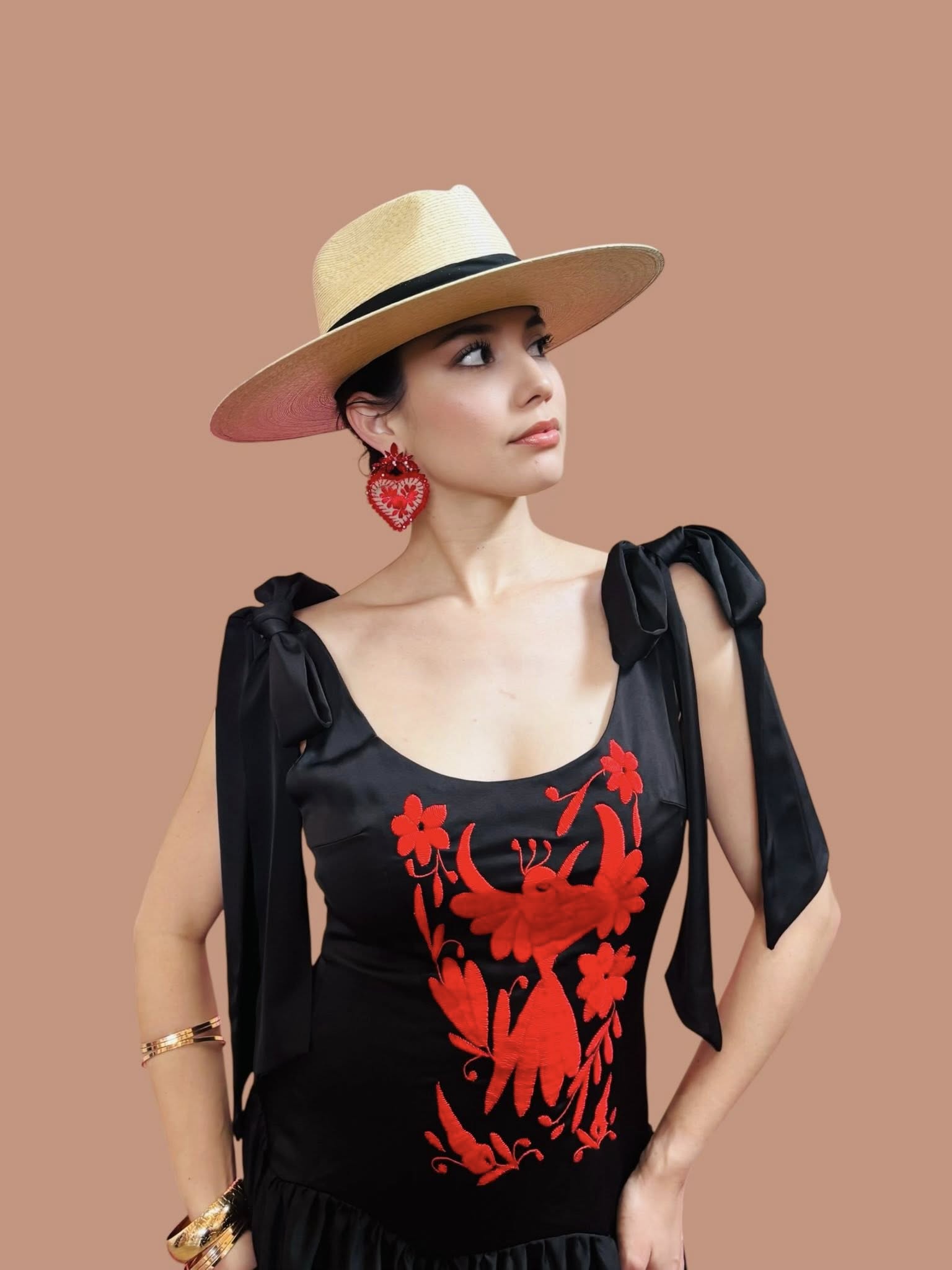 The Roxanna Otomi Dress brings authentic Mexican craftsmanship to your wardrobe. Handmade in Tenango de Doria, Hidalgo, this elegant piece features luxurious silky fabric with intricate Otomi detailing. A convenient side zipper ensures easy wear, while the true-to-size fit flatters every frame.